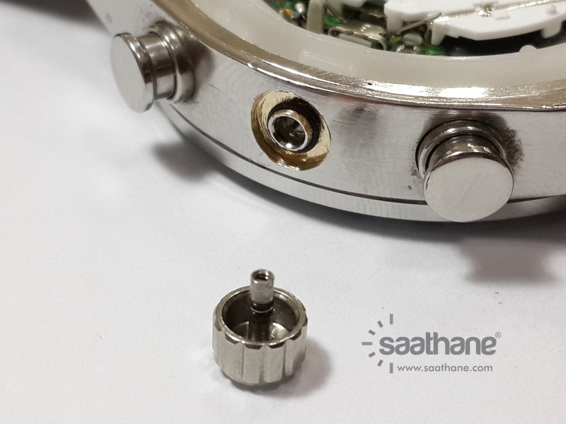 Bahse konu saatin tepesi kopmuş, neyseki tijde çok az da olsa diş kalmış tepeyi geçirebilmek için. Saatin tasarımına, kasa yapısına ve tije uyumlu bir tepe bulup uygulama yapacağız.